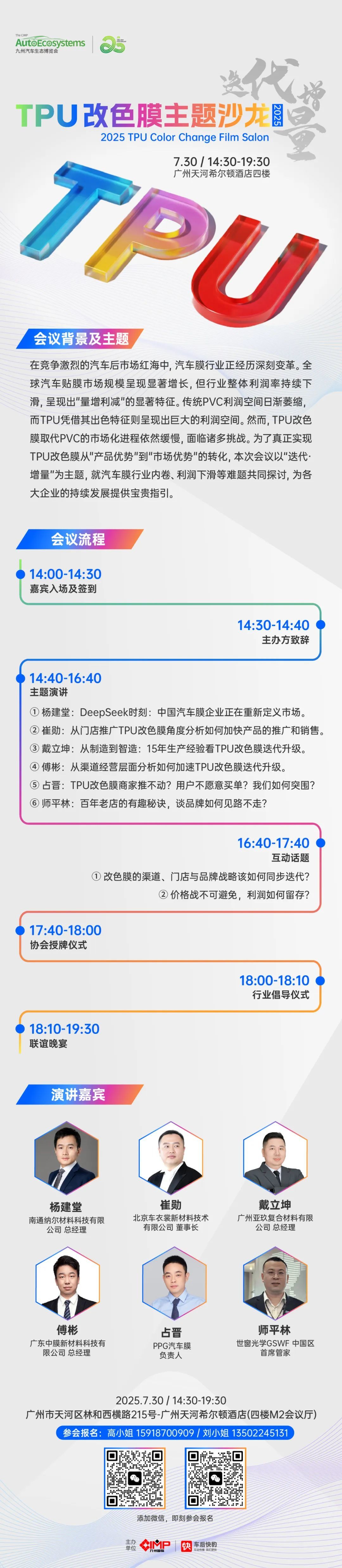 TPU改色膜主题沙龙将于7月30日隆重举办!破解迭代难题,共商增量之道