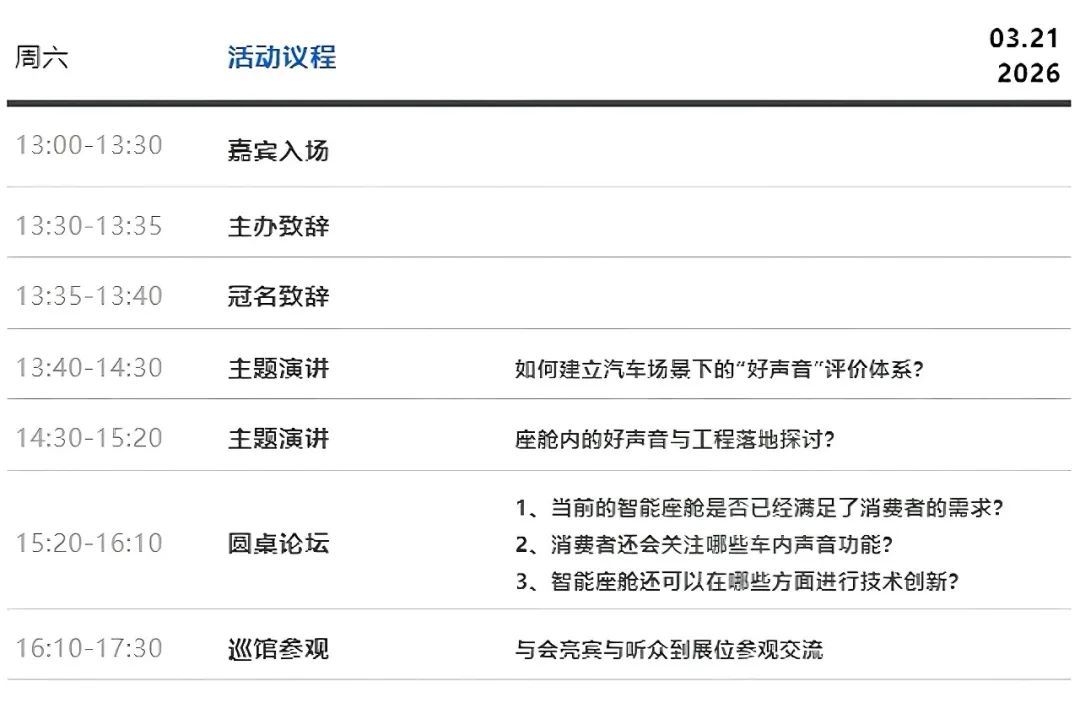 本届峰会将以“回归本质,探索声音美学”为主题,汇聚全球顶尖声学专家、车企技术负责人及供应链领袖,共同探讨声音之美与用户体验的技术升级。