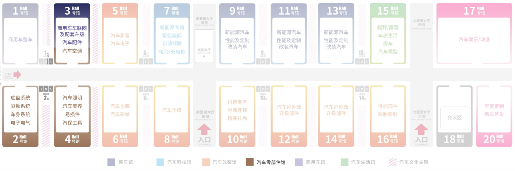 2026年展会展出规模达7万平方米,汇聚700+品牌,展品涵盖汽车部件与组件、易损件、车辆照明升级与改装、洗美养护、车载电器及用品、维修检测与保养、加工技术及设备、综合服务及其他共8大品类,全面覆盖乘用车与商用车领域,兼容传统燃油车及新能源车型零部件。