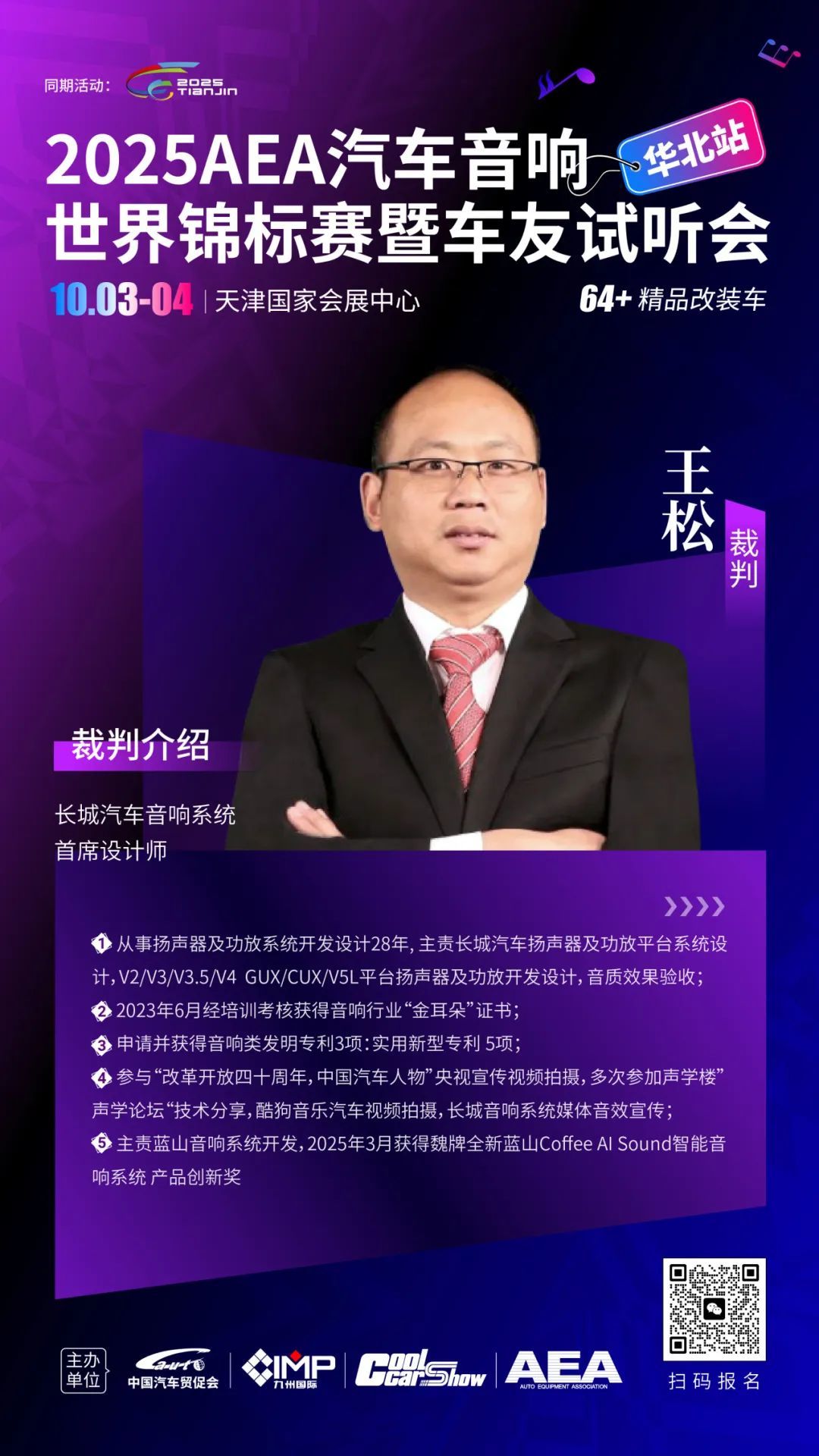 2025AEA汽车音响世界锦标赛暨车友试听会(华北站)首次与天津车展同期同馆举办,本次落地天津,汇聚“珠三角+华北”资源,为行业与车友打造一个多元链接的汽车音响文化生态圈,在这里,将汇聚30+品牌、1000家渠道商/专业改装门店,70万车展观众,将帮助品牌扩大影响力,也向全社会传递出正面积极的汽车改装文化理念,共同推动汽车音改行业向标准化、规模化发展。