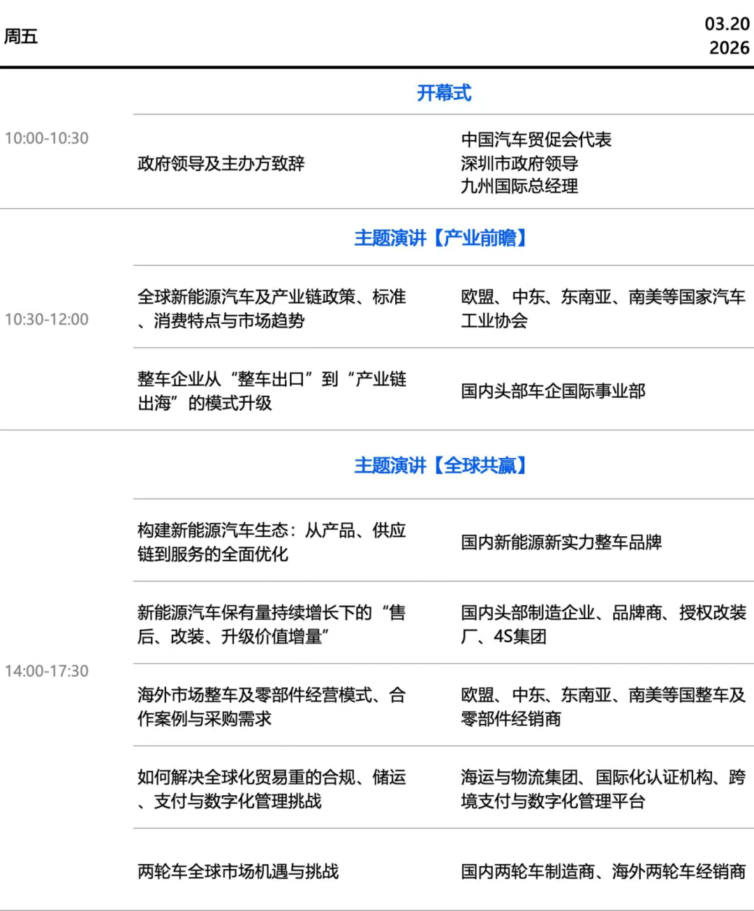 在此背景下,2026 年全球智能汽车大会及展览会特设“新能源供应链、电池 / 充电桩专区”,同期将举办多场国际论坛与活动,为产业链全球化布局与技术迭代搭建高效协作平台。