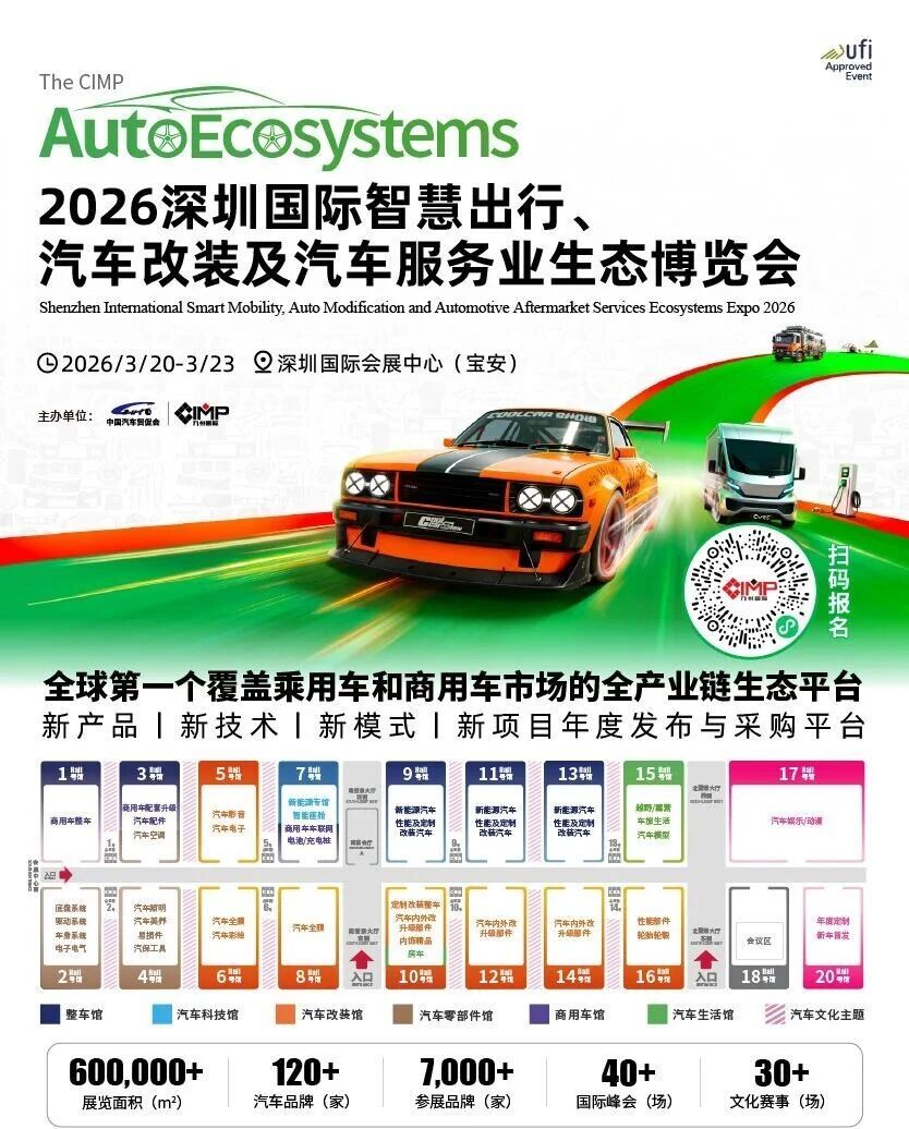 生态展贸平台。2026年展会将迎来20周年里程碑,规模预计突破60万平方米,吸引120家汽车品牌和7,000家产业链企业参展,超40万国内买家与12,000名海外买家现场选品采购。九州展不仅是全球汽车人的年度采购与捕捉行业趋势的盛会,也是推动全球汽车产业链创新发展的年度风向标。